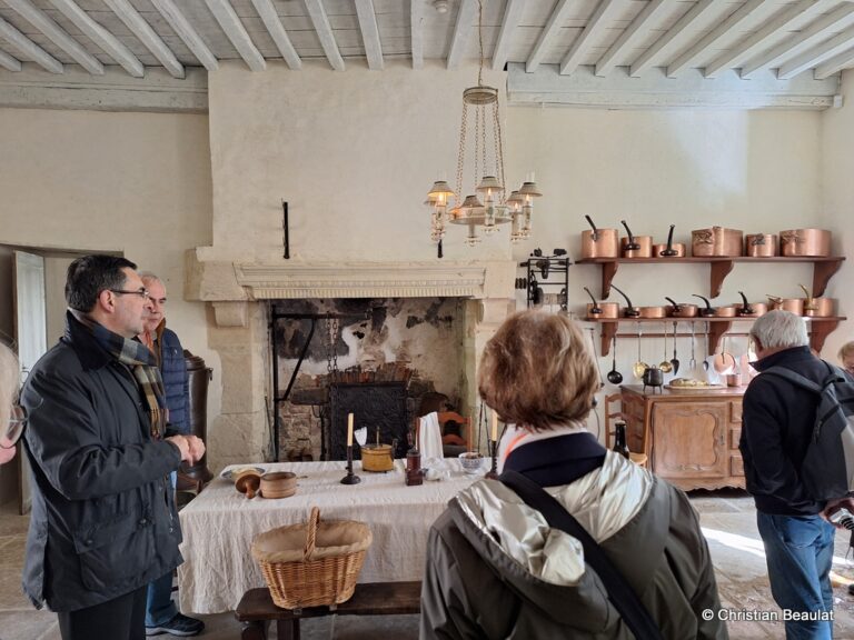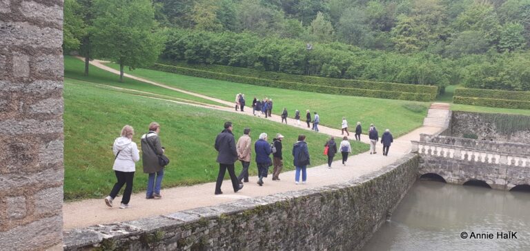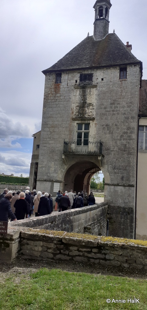 Il a été difficile aux participants d’abandonner ce domaine au double visage après de telles présentations, pour reprendre le car et se diriger vers un autre château, celui d’Epoisses, lui aussi habité et/ou visité par des personnalités du Grand Siècle, telles que le Grand Condé ou Madame de Sévigné, ou plus récentes telle la reine d’Angleterre Elisabeth II. Certains bâtiments illustrent l’origine médiévale des lieux (la tour d’entrée porte le nom de la reine Brunehaut (ca. 547 – 613) qui a vécu à Epoisses). Le pigeonnier de 3200 boulins atteste encore de l’importance du domaine, qui renfermait également une église seigneuriale achevée au XIIIe siècle. Une même famille occupe les lieux depuis 1661. La visite guidée a permis aux participants de découvrir un ameublement et une décoration présentant des éléments conservés au fil du temps (armure, galerie de portraits, chambre de Madame de Sévigné ….).