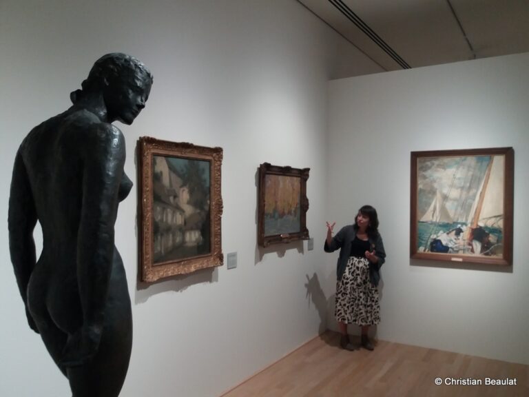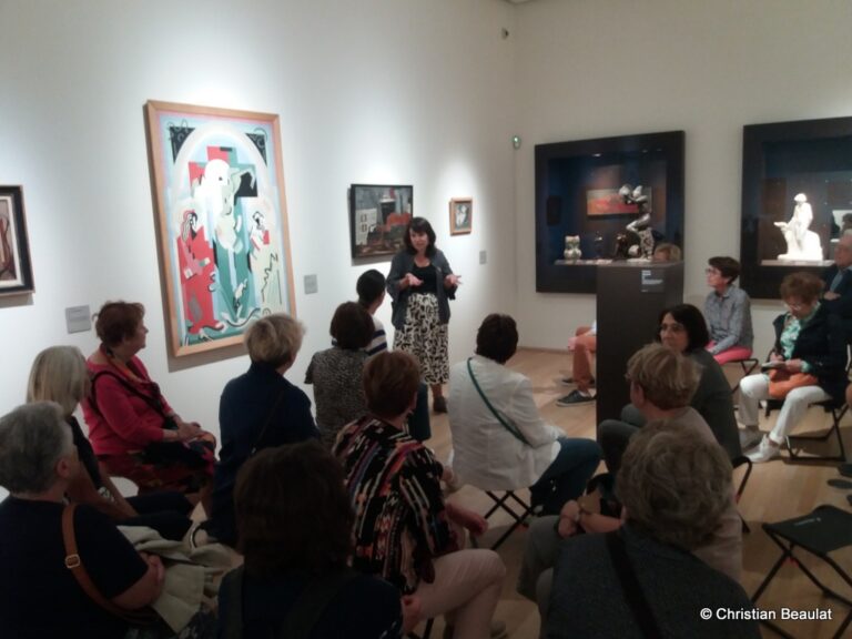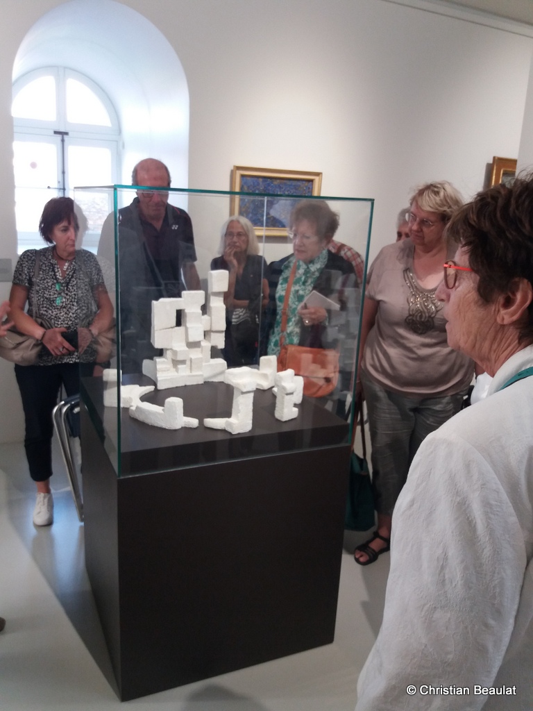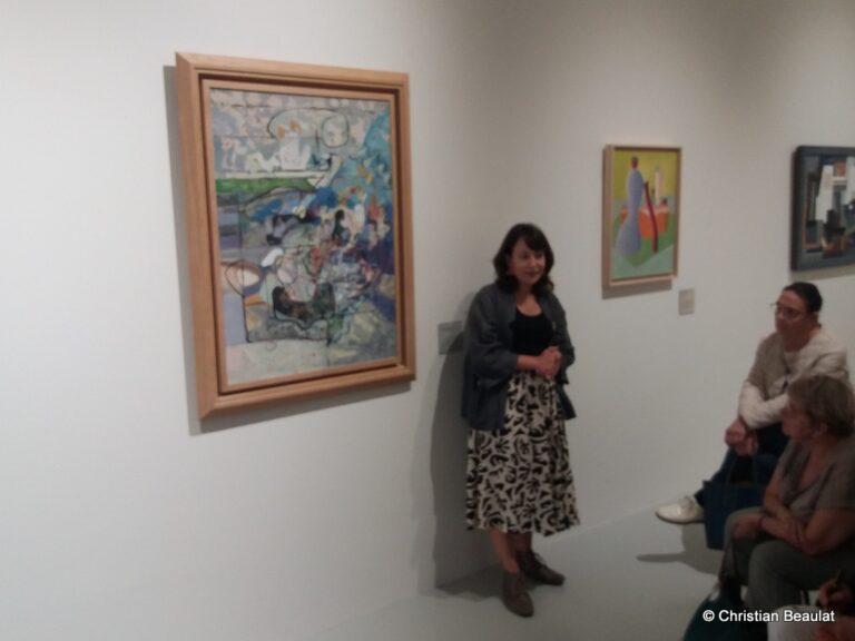 Agnès Werly, conservatrice en charge de cette collection a voulu nous faire partager sa passion pour son métier et pour ses coups de cœurs ou pour les incontournables de la donation Granville : d’Urbi et Orbi de Maria Héléna Vieira da Silva, à une représentation d’une cosmogonie Jaïne, à la vachepaysage qui nous éMeuh toujours ; aux œuvres cubistes, art déco, à un autoportrait sculpté de Bourdelle, en passant par l’espace consacré à Nicolas de Staël, sans oublier la donation Boisecq-Longuet, en terminant par deux acquisitions récentes de Claude Garache décédé récemment et considéré comme « le peintre du Rouge ».
