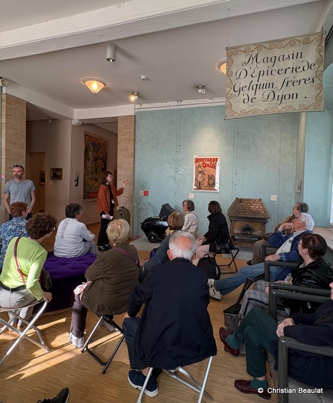 Notre médiatrice décrit ensuite les œuvres exposées consacrées à la moutarde. C’est Jean Naigeon qui utilise le premier le verjus, ce qui explique la proximité nécessaire de vignobles.