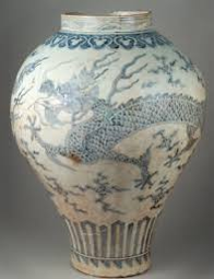 Vase au dragon, rapporté par Victor Collin de Plancy, porcelaine à décor bleu et blanc, Corée, 18e siècle. Conservé au Musée national de la céramique de Sèvres