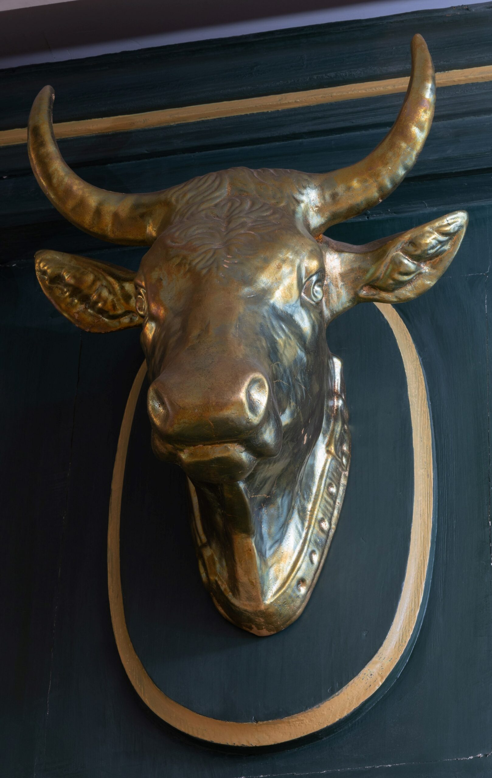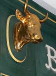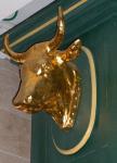 Enseigne représentant la tête dorée d’un bœuf portant un collier.