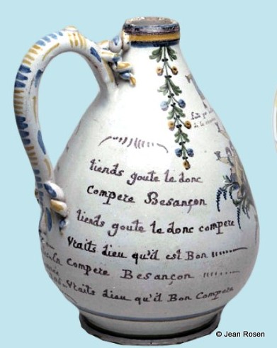 Nous mettrons en évidence la manière dont cette faïence, par ses décors et ses formes, reflète l’évolution sociologique de la consommation du vin en France, de 1640, date de la première apparition officielle de ce mot, jusqu’en 1863 précisément, date de la première apparition du phylloxéra, à l’origine de la destruction d’une grande partie du vignoble et de changements profonds.