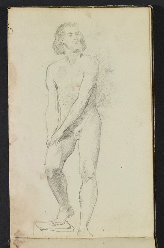 Papier relié, couverture papier, reliure dos cuir, 60 feuillets avec 70 dessins au crayon et à la plume, et aquarelles avec textes. Hauteur : 13,6 cm ; Largeur : 22 cm ; Epaisseur : 1,1 cm. Inv. 1993-13-3