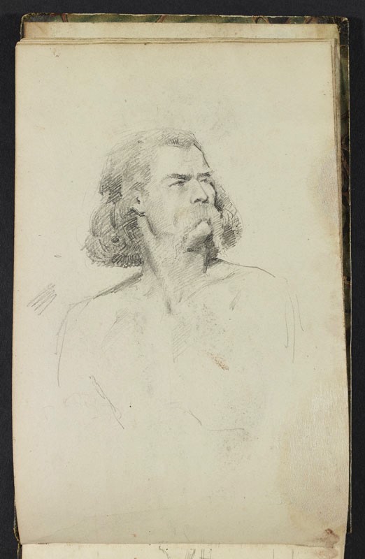 Le présent carnet est constitué d’une couverture papier, reliure dos cuir, et de 70 dessins et aquarelles avec textes.