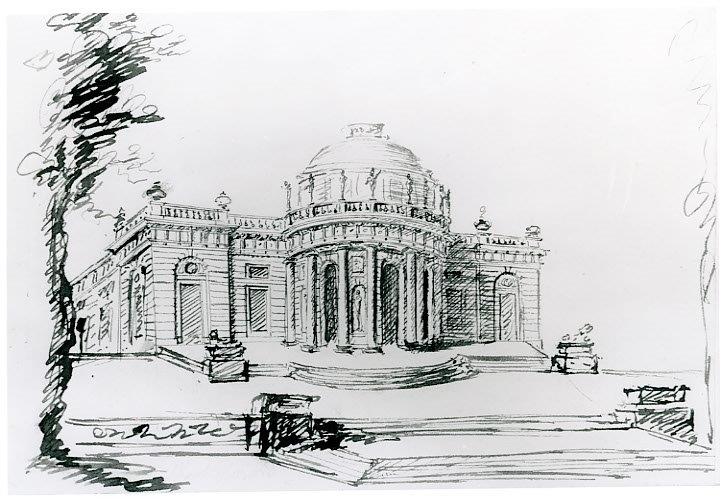 Le Château de MontmusardAuteur : Anonyme français,Époque, datation : 18e siècle (1ère moitié)Ancienne attributionClérisseau, Jacques- LouisDessin. Encre sur papier1993-6-1© photo Musée des Beaux-Arts de Dijon