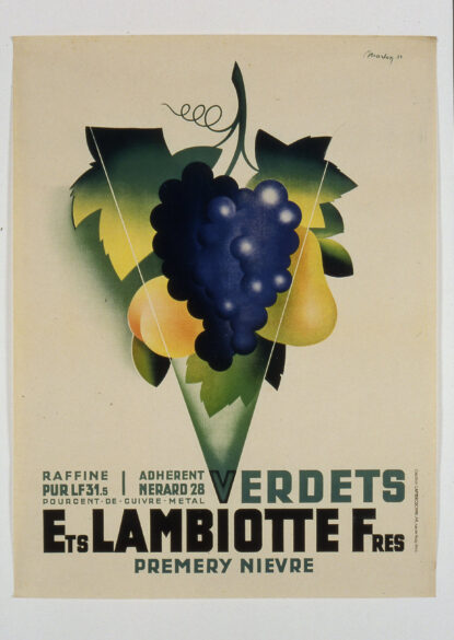 Désignation : Verdets, afficheCréation – Dessinateur : Lajos MARTON, 1934Exécution – Imprimerie : Lambroschini CréationMatière et technique : Sérigraphie C sur papierMesures : Hauteur en...