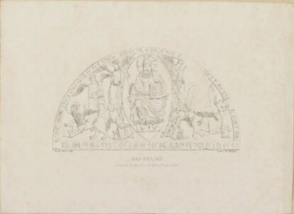 Tympan de Saint-Bénigne de DijonEstampe, 19e siècle (2ème quart)Auteur : MONOTLithographe : Jobard, Hippolyte-Henri. Vierzon, 1857 – Ville-d’Avray, 1885. École FrançaiseLithographie. Hauteur : 22,5 cm...