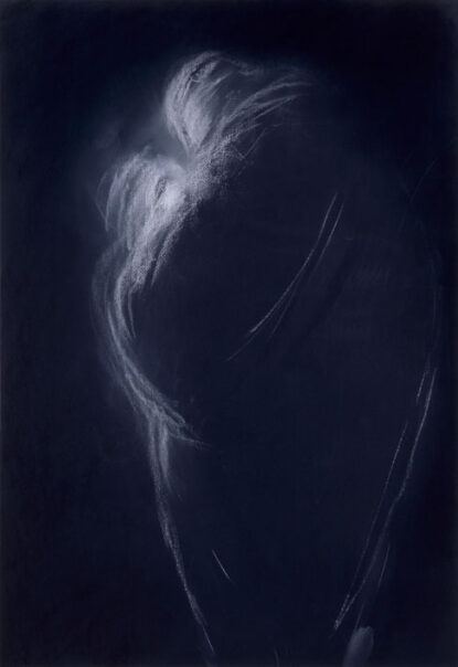 Sans titre (Figures enlacées) Dessin 1996. Auteur : Claudio PARMIGGIANI (Luzzara, 1943) . École Italienne Pigment noir et craie sur papier noir. Hauteur : 100 cm...