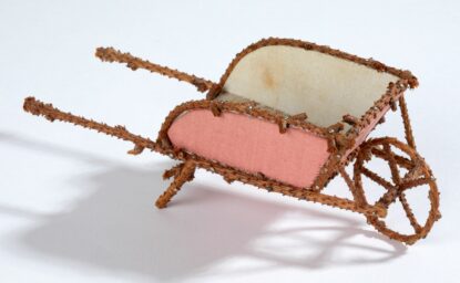 Désignation : Brouette miniatureCréation – Sculpteur – Menuisier – Ébéniste : Léon ALLOUISMatière et technique : Branchettes de sapin travaillées, épingles à tête, satin.Mesures :...