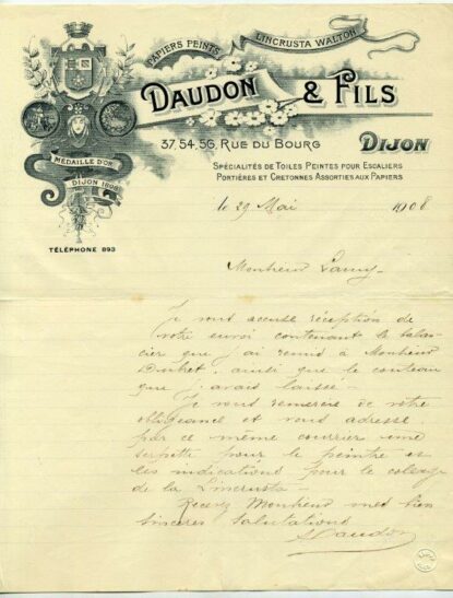Désignation : Lettre ;Création : AnonymeMatière et technique : Facture : lithographie en noir et blanc, inscription typographiée et manuscriteMesures : Hauteur en cm 27,1...