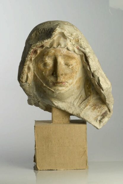 Tête de Vierge. Fragment d’une statue de Vierge de Pitié. Bourgogne, 15e siècle.Auteur : Anonyme bourguignonPierre avec traces de polychromie. Hauteur : 25 cm ;...