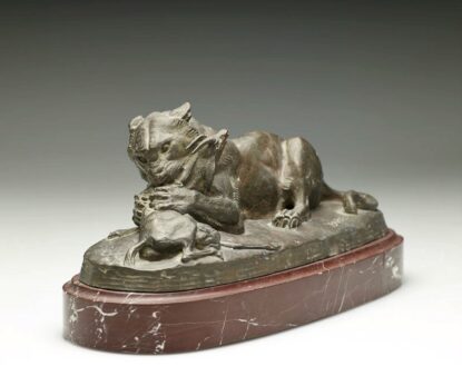 Panthère dévorant une gazelleAuteur : Antoine-Louis BARYE (Paris, 1796 – Paris, 1875). 19e siècle (2ème quart) / 19e siècle (3ème quart)Bronze patine brune. Hauteur :...